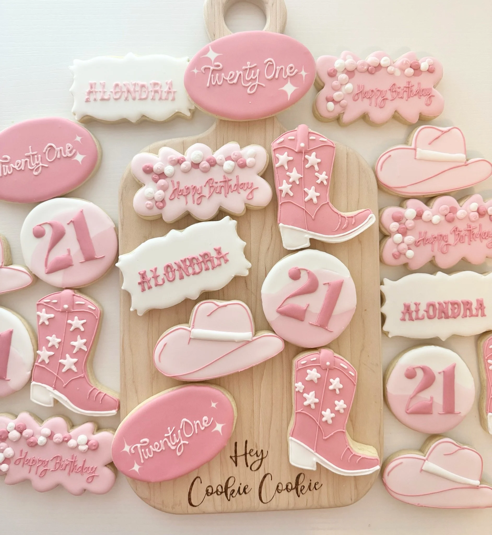 Hey Cookie Cookie LLC is owned by Sarah Allen, a local mom of two and full-time baker. Her passion is baking and creating, turning your vision into beautiful, edible art. What started as a side gig to scratch her creative itch and be involved with the community, quickly evolved into a passion project. The business was founded in 2021, and became a full-time operation in 2025, after Sarah left her 15 year career in corporate marketing to pursue her cookie dream.