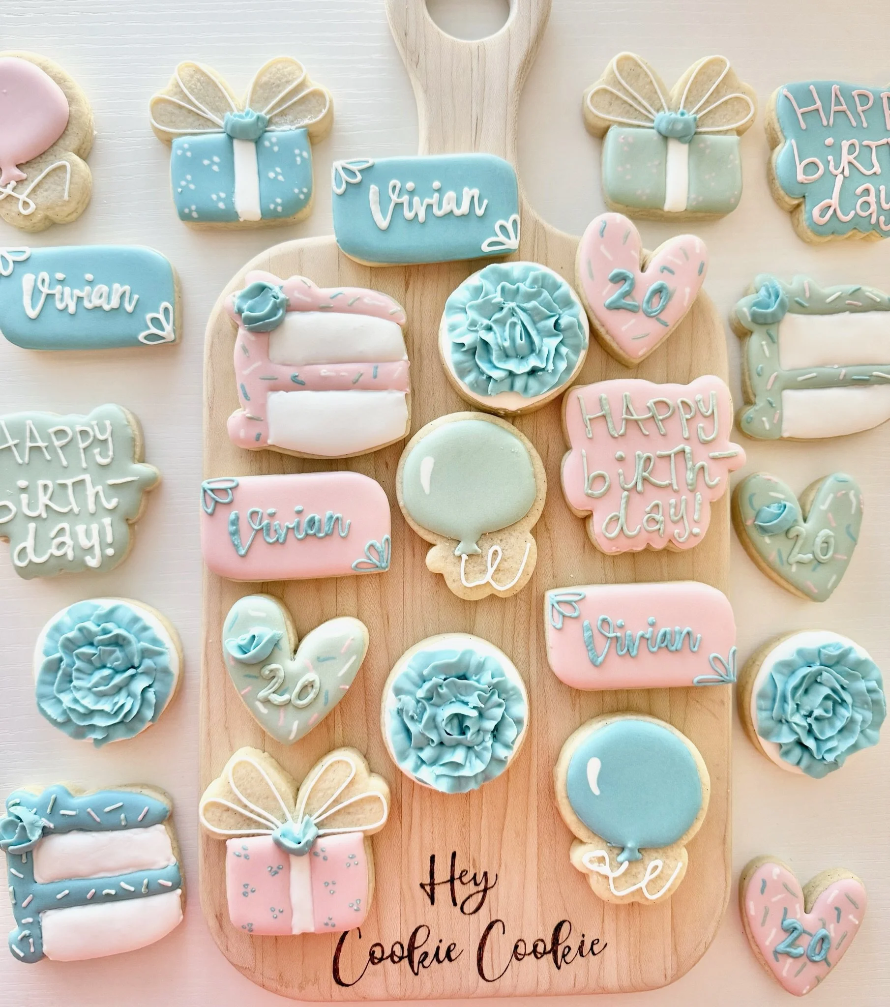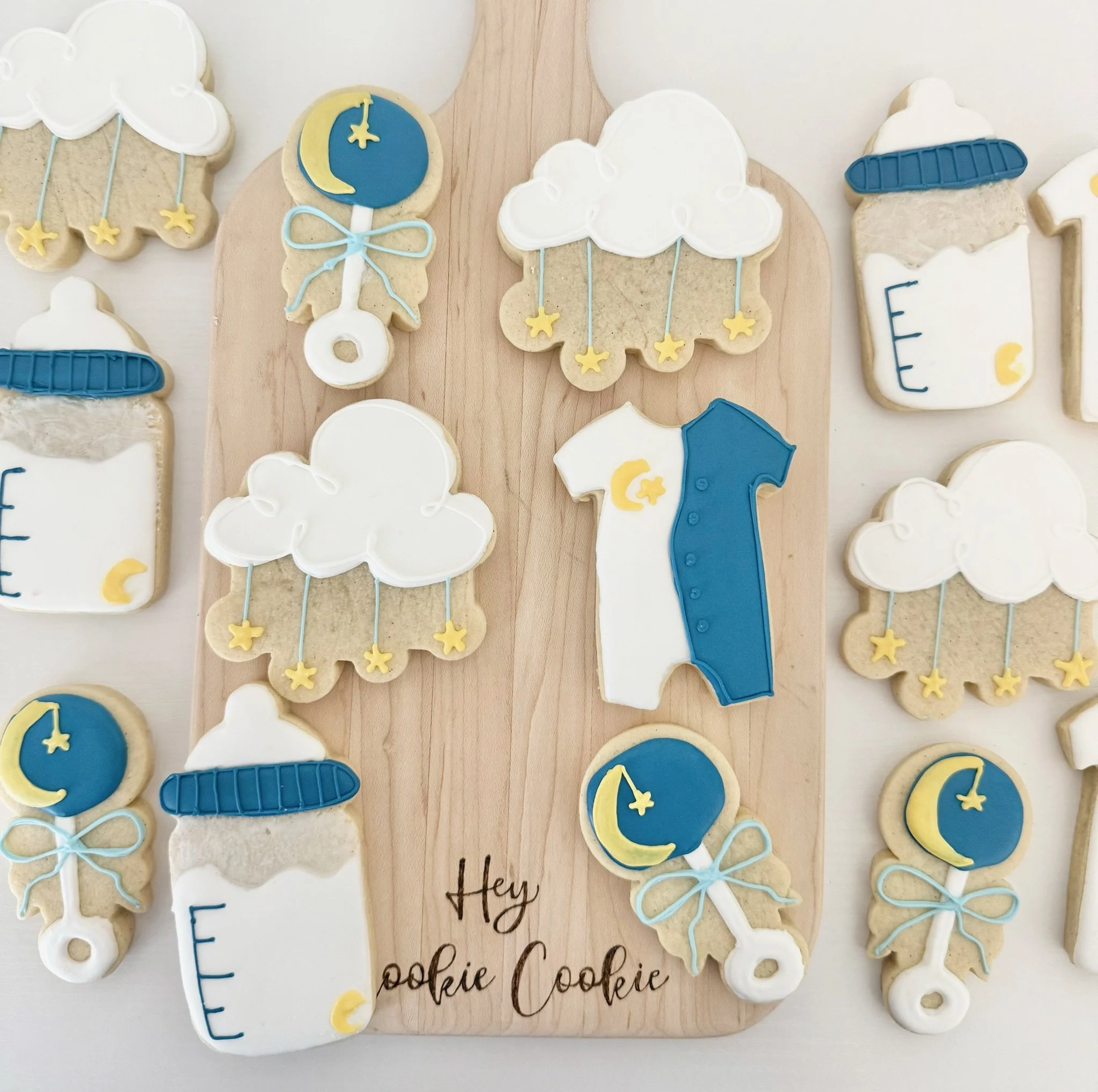 Basic custom cookies are the most budget friendly. A simplistic, yet elegant addition to any celebration. You select theme, colors, name/age, and quantity.